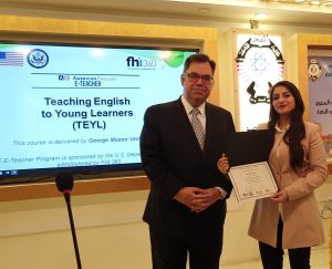حضر ورشة العمل المسؤولالاقليمي لمكتب اللغة الانكليزية في السفارة الامريكية توماس سانتوس و قام بتسليمهم الشهادات وسط فرحة الجميع بهذا الانجاز.
