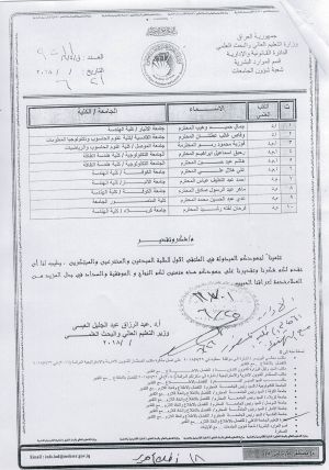 تكريم أحد أساتذة كلية المنصور بكتاب شكر وتقدير من معالي وزير التعليم العالي والبحث العلمي