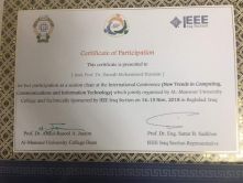 مشاركة أ.م.د. زينب محمد حسين رئيس قسم هندسة الحاسوب في المؤتمر الدولي للكلية برعاية المعهد الاميركي للهندسة الكهربائية والالكترونية IEEE بعنوان التوجهات الحديثة للحوسبة والاتصالات وتكنولوجيا المعلومات والذي أقيم على أرض الصرح العلمي المتميز كلية المنصور الجامعة. وفي ختام المؤتمر تم تكريمها بشهادة شكر وتقدير من السيد عميد الكلية ودرع التمييز.