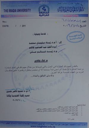 تكليف مقرر قسم هندسة الحاسوب كعضو في اللجنة الوزارية الخاصه بفحص مدى جاهزية كليات الهندسة في الجامعات العراقية للحصول على الإعتماد (التصنيف) البرامجي الوطني
