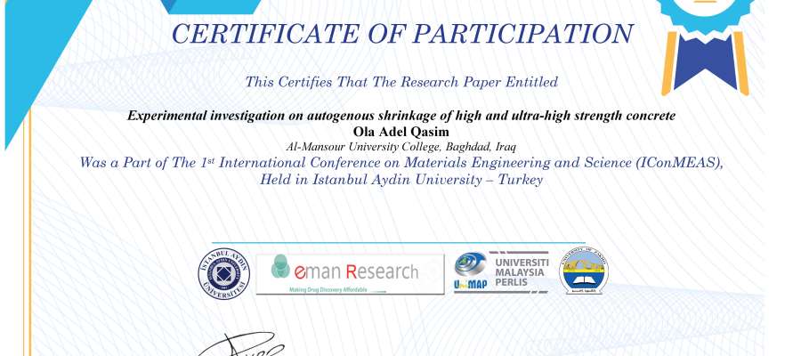 Dr. ola adel Qasim in the Department of Civil Engineering Published a Research in the International conference entitled: