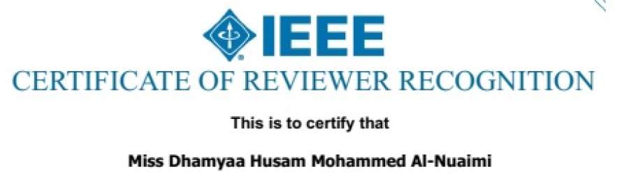 أختيار م.م.ضمياء حسام محمد التدريسية في قسم هندسة الاتصالات كمحكم علمي في مجلة IEEE Access أحدى مجلات معهد الهندسة الكهربائية والالكترونية IEEE والمصنفة ضمن مستوعبات Scopus و Clarivate Analytic بمعامل تأثير أكثر من 4 وحصول التدريسية على شهادات مراجعة وتحكيم من المجلة وبهذه السانحة يتقدم السيد رئيس القسم بشكره وتقديره للتدريسية لجهودها برفع اسم كلية المنصور الجامعة عاليا في المحافل العلمية متمنيا لها بدوام التألق والابداع في مسيرتها العلمية الحافلة بالانجازات العلمية.