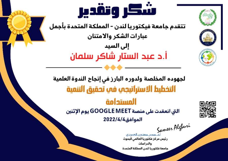 شاركت كلية المنصور الجامعة متمثلة بالسيد معاون العميد للشؤون العلمية الاستاذ الدكتور عبد الستار شاكر سلمان في الورش السانده لمؤتمر القيادات الجامعية الثاني والذي تمحور حول "التخطيط الاستراتيجي في تحقيق اهداف التنمية المستدامة" بالتنسيق مع جامعة فكتوريا لندن - في المملكة المتحدة وبرعاية الامين العام لاتحاد الجامعات العربية الاستاذ الدكتور عمرو سلامة ومنظمة الصداقة الدولية، قدم خلال الورشه المقامه يوم الاثنين 4-4-2022 رؤيه عن ورقة عمل الكلية نحو تحقيق اهداف التنمية المستدامة.