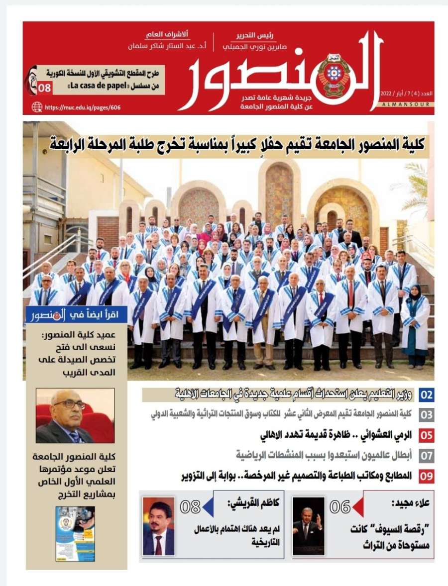 صدر العدد الجديد من جريدة المنصور بعددها الرابع وبنسختيها الورقية والالكترونية تضمنت مواضيع متنوعة ثقافية ومجتمعية