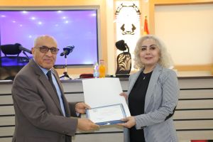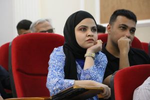 Assistant Professor Dr. Laila Muhammad Ali from the Department of Digital Media and lecturer Dr. Mustafa Abbas Al-Bayati from the Department of Media at Imam Al-Kadhim College spoke at the symposium. The two lecturers explained the importance of using artificial intelligence applications and techniques in media work, especially in news production and broadcasting. They stressed that these technologies represent a new revolution in knowledge, information, and media and will represent a broad field of study and media research. It is important to benefit from them and employ them scientifically and objectively to serve society. Dr. Mohamed Falhi, Head of the Digital Media Department, moderated the symposium.