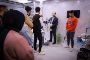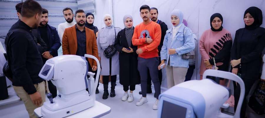 Based on the memorandum of cooperation with Baghdad Al-Ahli Hospital, today, several students from the fourth stage of the Department of Medical Device Technology Engineering at the college, under the supervision of the department’s teachers (M.M. Ali Qutaiba Abdel-Razzaq and M.M. Omar Abdel-Hussein Abdel-Razzaq) made a scientific field visit. The hospital provides the opportunity for our dear students to explore the depths of the specialty through field observation and access to the hospital’s various departments and facilities, from the laboratory, which contains various testing devices for blood, viruses, cross-matching, and other laboratory devices. It was explained to the radiology department where the helical scanner was fixed, and Mobile X-ray devices and the operator needs of Radiation protection procedures were taken, after which we moved to the catheter surgery department, where a direct interventional operation was witnessed and clarification and explanation by the specialist doctor to the ophthalmology department and viewing optical examination and laser devices for small, simple eye operations. Mr. Hussein Mumtaz, Director of Public Relations at the hospital, received the students and teachers. Dr. Musa Suhail