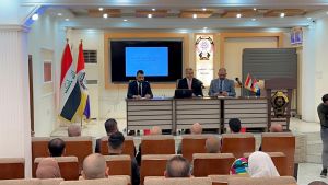 The symposium was presented by Dr. Karim Khasbak, Chairman of the Iraqi State Council, M.M. Abdul-Ghani Mezher Obaid, and the session was chaired by Professor Dr. Raad Fajr Fateeh, Head of the Law Department at the College. The topics related to the discretionary authority of the administration and the circumstances of its use were presented, along with the authority of administrative exclusion to cancel in cases of arbitrariness affecting employees, and the attendees made interventions that came to the heart of the symposium's topic.