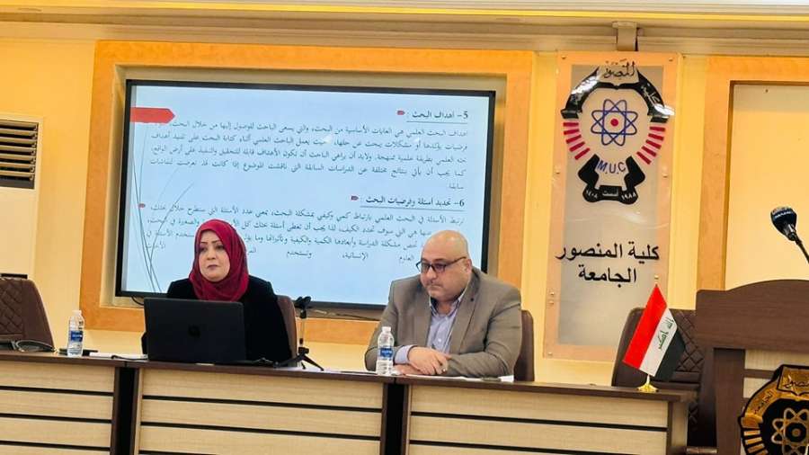 أشاره الى توجيهات وزارة التعليم العالي والبحث العلمي بإقامة ندوات ودورات مختلفة تخص الأمور العلمية والمجتمعية والتربوية وتطوير قابلية الطلبة وبرعاية السيد عميد كلية المنصور الجامعة الأستاذ الدكتور صباح محمد كلو وحضور السيد عميد الكلية للشؤون الإدارية الأستاذ الدكتور حسن النجار اقام قسم إدارة الاعمال بالتعاون مع وحدة التعليم المستمر في قاعة المؤتمرات صباح التاسع من آذار 2024 ندوة تدريبية حضورية حول (( أساليب وطرائق اعداد البحث العلمي)) ، اذ قدمت من قبل الدكتور زياد علي عباس، والمدرس المساعد الاء فلحي مزهر مفهوم البحث العلمي واهميته ومناهجه وخطوات اعداد البحث العلمي ، وقدما شرحا" لكل المفاهيم المرتبطة بموضوع أساليب وطرائق واخلاقيات البحث العلمي كونه موضوعا" مهما" للطلبة وجزء من متطلبات مشروعات تخرج المرحلة الرابعة.