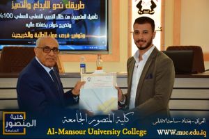 Under the patronage of Professor Dr. Sabah Muhammad Kallow, Dean of Al-Mansour University College, the Medical Device Technology Engineering Department held on Sunday, 3/10/2024, a scientific symposium entitled (Artificial Intelligence in Medical Devices) and an exhibition of medical devices in cooperation with several companies and hospitals, where the participating companies presented medical products. A variety of different specializations, such as ultrasound devices, operations, laboratory equipment, and other latest medical devices and supplies.