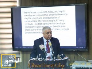 ِAssist. Professor Rafid Abdul Amir Al-Rubaie, Head of the English Language Department at Al-Mansour University College, participated in the Second International Conference on the English Language, which was held by the College of Arts, Iraqi University. Dr. Al-Rubaie presented his research entitled (Translating Arabic Proverbs into the English Language) in the opening session of the conference. The conference organizing committee honored Dr. Rafid Al-Rubaie with the conference shield and the participation medal.
