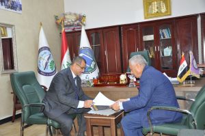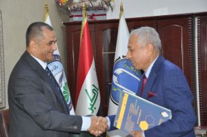 In light of the directives of the Ministry of Higher Education and Scientific Research to develop the work of academic institutions and advance them by signing twinning and joint cooperation agreements. With the authorization of the Dean of Al-Mansour University College, Professor Dr. Sabah Muhammad Kallo, Professor Dr. Ahmed Omar Ahmed, Head of the Business Administration Department at the college, visited the College of Management and Economics - University of Baghdad to attend the signing ceremony of a twinning and joint cooperation agreement between the Business Administration Department in our college and the aforementioned college. With God’s blessing, the agreement was signed on Sunday morning, 2/6, by Professor Dr. Sabah Manfi Reda, Dean of the College of Administration and Economics, in the presence of Dr. Ali Adnan, Director of the Scientific Affairs Unit at the aforementioned college. It is valid for one year, subject to renewal.