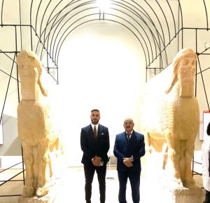 The visit included a tour of the museum halls to view the archaeological and cultural holdings that embody the creativity of the Iraqi people and their cultural achievements throughout their ancient history.