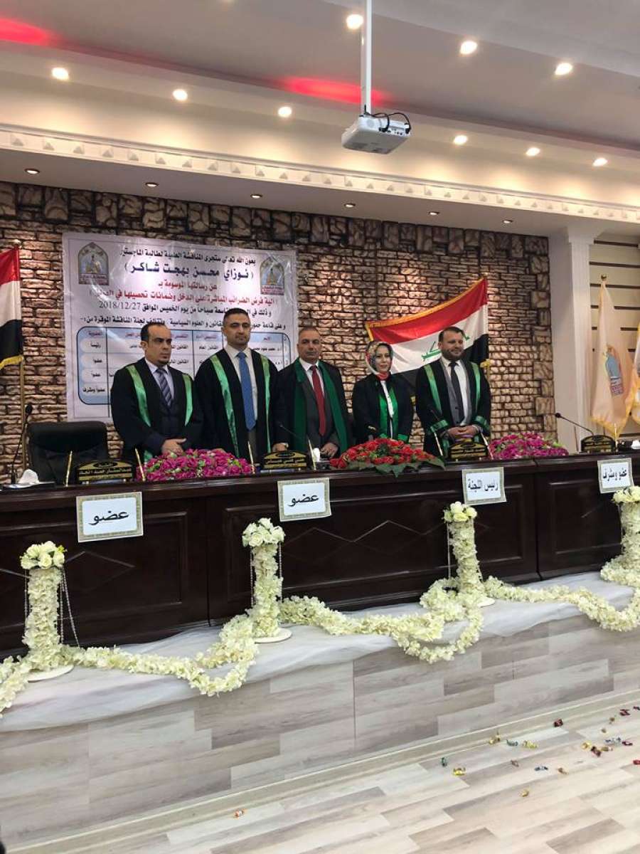 شارك الأستاذ المساعد الدكتور علي غني عباس رئيس قسم القانون اليوم الخميس الموافق 27/12/2018 بمناقشة رسالة طالبة الماجستير الموسومة الية فرض الضرائب المباشرة على الدخل وضمانات تحصيلها في العراق على قاعة حمورابي في كلية القانون والعلوم السياسية جامعة كركوك وترأس الجلسة الاستاذ الدكتور محمد علوم وعضوية الاستاذ المساعد عبد الستار حمد وعضوية واشراف الاستاذ المساعد الدكتور سعد العطية وتوجت المناقشة بحصول الطالبة على تقدير امتياز